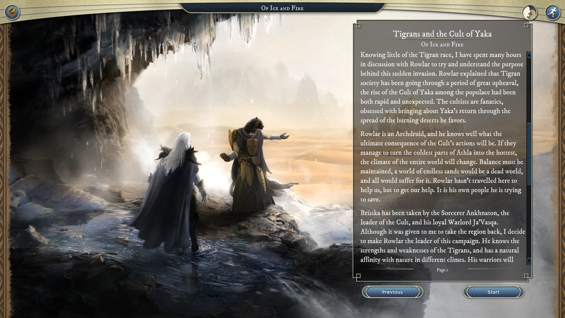 "Brisska, once an icy paradise to its Frostling population, is now a baking desert. We must take the region back from the Tigrans of the Cult of Yaka, and push back their magic before this hungry heat can spread any further. Archdruid Rowlar will take command, his knowledge of Tigran strategy should prove invaluable." - Arvik the Dark